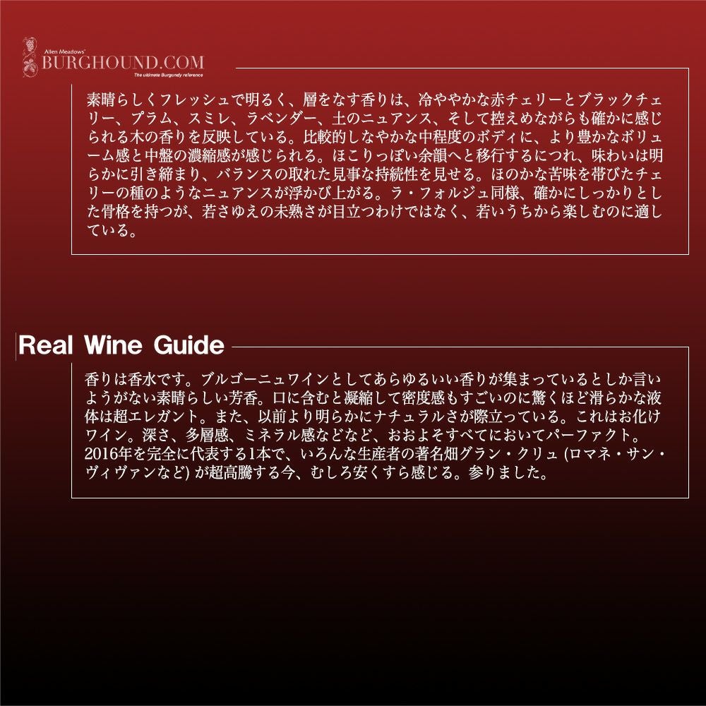 他の画像を見る クロ ド ヴージョ グラン クリュ 特級 2017年 蔵出し品 手摘み100% オーク樽16~20ヶ月熟成(新樽80~100%) ドメーヌ フランソワ ラマルシュ元詰 AOCクロ ド ヴージョ バーガウンド91-94点獲得Clos de Vougeot Grand Cru 2017 Domaine Francois Lamarche 赤ワイン フランス フルボディ 当店特別価格 ¥ 21,924 税込 在庫切れ 詳細を見る お気に入りに登録する