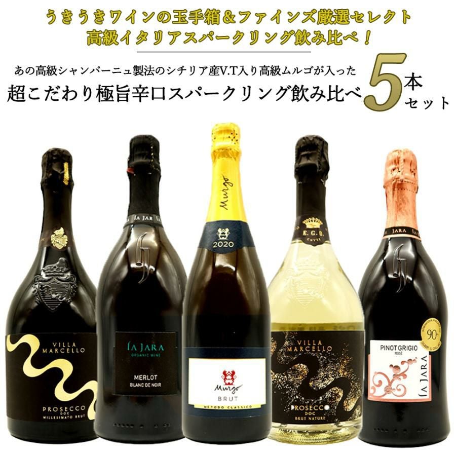 他の画像を見る 【送料無料】高級イタリアスパークリング!高級シャンパーニュ製法のシチリアV.T入り高級ムルゴが入った超こだわり極旨辛口スパークリング飲み比べ5本セットSpecial Itarian Sparkling Wine 5 Set スパークリング 辛口 送料無料 当店特別価格 ¥ 11,474 税込 在庫切れ 詳細を見る お気に入りに登録する