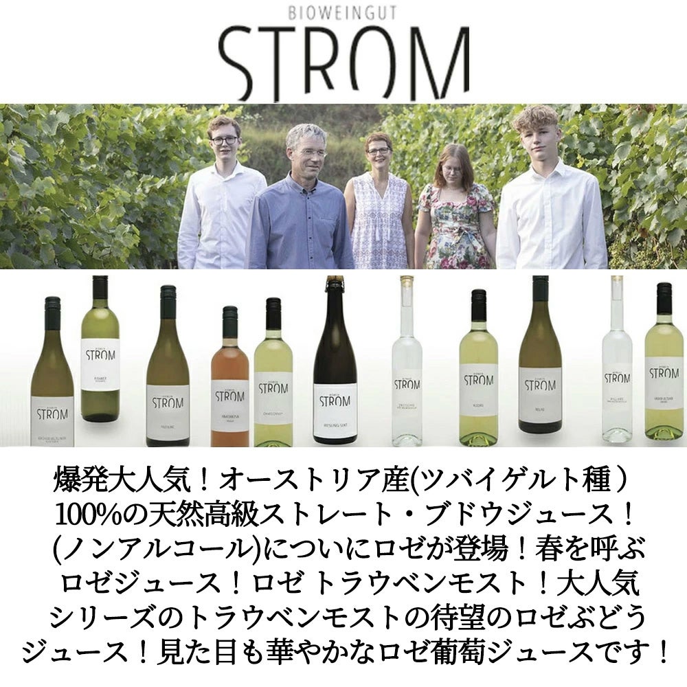他の画像を見る 天然ぶどうジュース ロゼ トラウベンモスト 数量限定 (ノンアルコール) ワインバウ シュトロム社 1000mlROSE Traubenmost Vintage 2025 100% (Zweigelt Grape 100%) ロゼ 当店特別価格 ¥ 1,528 税込 カートに入れる お気に入りに登録する