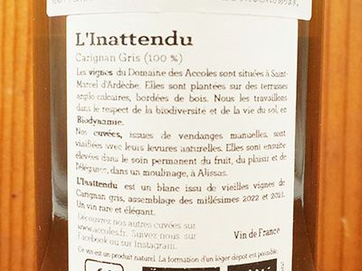 他の画像を見る リーナトンデュ[2022]年 蔵出し品 ドメーヌ デ ザコル元詰 (元ドメーヌ ラルローの醸造責任者ローレンス&オリヴィエ ルリッシュ家)L'innatendu [2022] Domaine des Accoles (Florence et 白ワイン フランス 辛口 当店特別価格 ¥ 6,123 税込 カートに入れる お気に入りに登録する