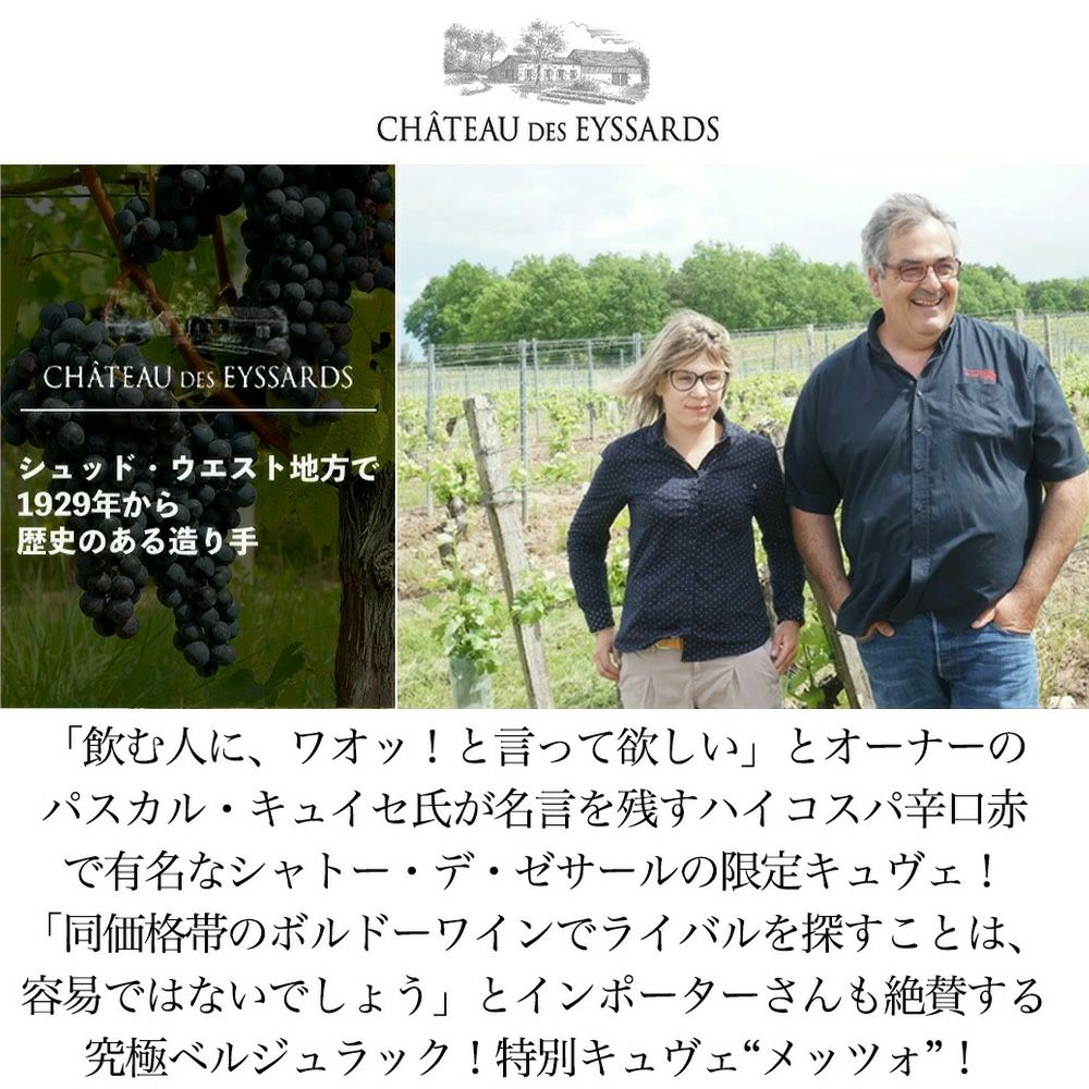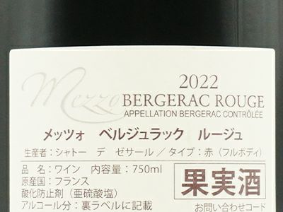 他の画像を見る メッツォ ベルジュラック ルージュ 2022 750ml シャトー デ ゼサール元詰 フランス 赤ワイン 稲葉輸入品Chateau des Eyssards Mezzo Bergerac Rouge 2022 AOC Bergerac Rouge 赤ワイン フランス フルボディ 辛口 当店特別価格 ¥ 1,504 税込 カートに入れる お気に入りに登録する