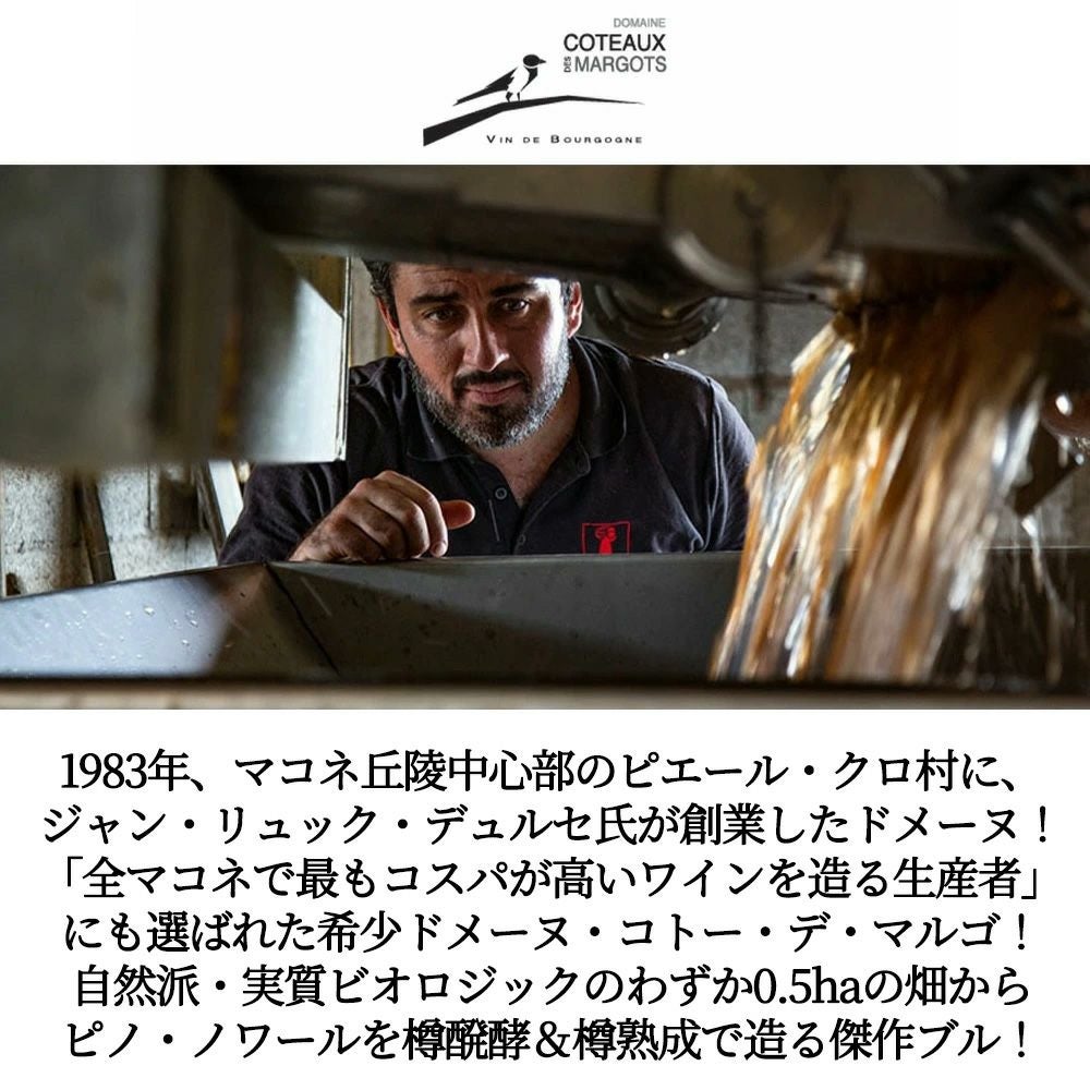 他の画像を見る ブルゴーニュ ピノ ノワール 2021 蔵出し品 ドメーヌ コトー デ マルゴ元詰 (ピエール ジュリアン デュルセ家)Bourgogne Pinot Noir 2021 Domaine Coteaux des Margots (Pierre-Julien Duroussay) 赤ワイン フランス ミディアムボディ 辛口 当店特別価格 ¥ 3,594 税込 カートに入れる お気に入りに登録する