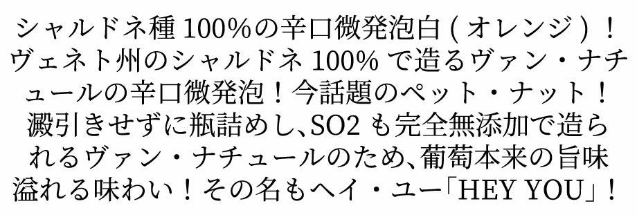他の画像を見る ヘイ ユー フリッツァンテ ビアンコ ペット ナット 2022 オールド ボーイ ワイン IGTヴェネト 自然派 ペティアン ナチュレル 微発泡HEY YOU!Frizzante Bianco 2022 (Petillant Naturel) OLD BOY WINE I.G.T. VENETO 白ワイン オレンジ イタリア 辛口 当店特別価格 ¥ 3,482 税込 カートに入れる お気に入りに登録する