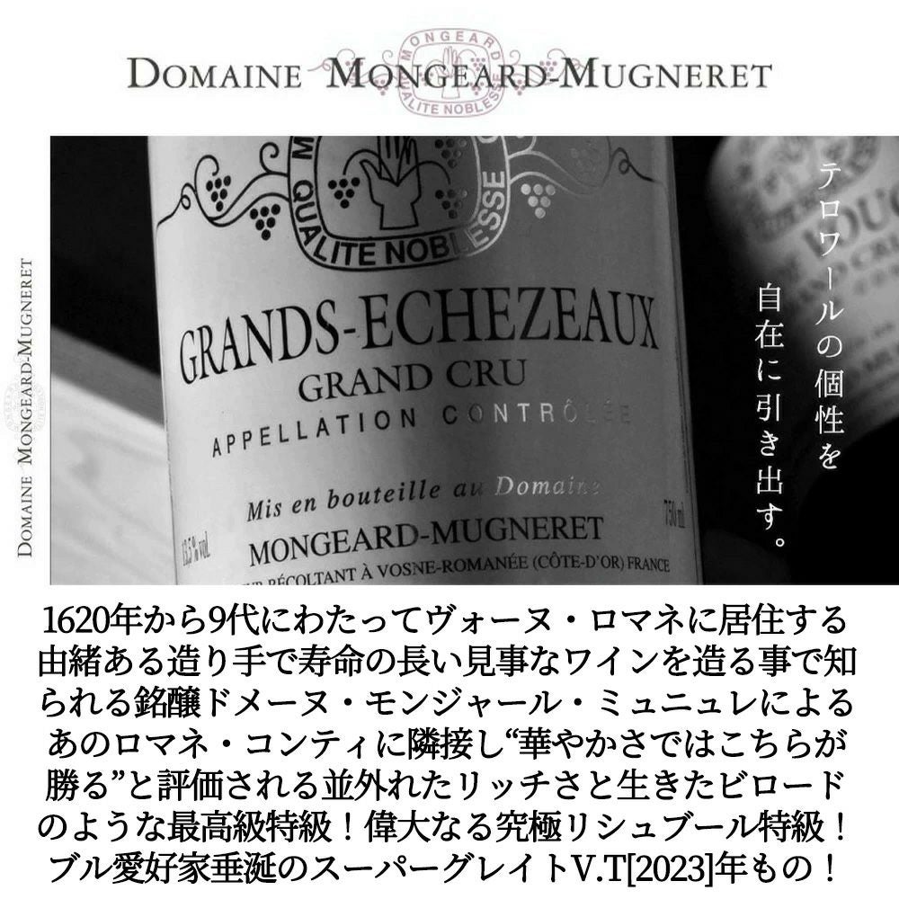 他の画像を見る リシュブール グラン クリュ 特級 2023 蔵出し ドメーヌ モンジャール ミュニュレ元詰 AOCリシュブール グラン クリュ 特級Richebourg Grand Cru 2023 Domaine Mongeard Mugneret 赤ワイン フランス フルボディ 辛口 当店特別価格 ¥ 202,350 税込 カートに入れる お気に入りに登録する