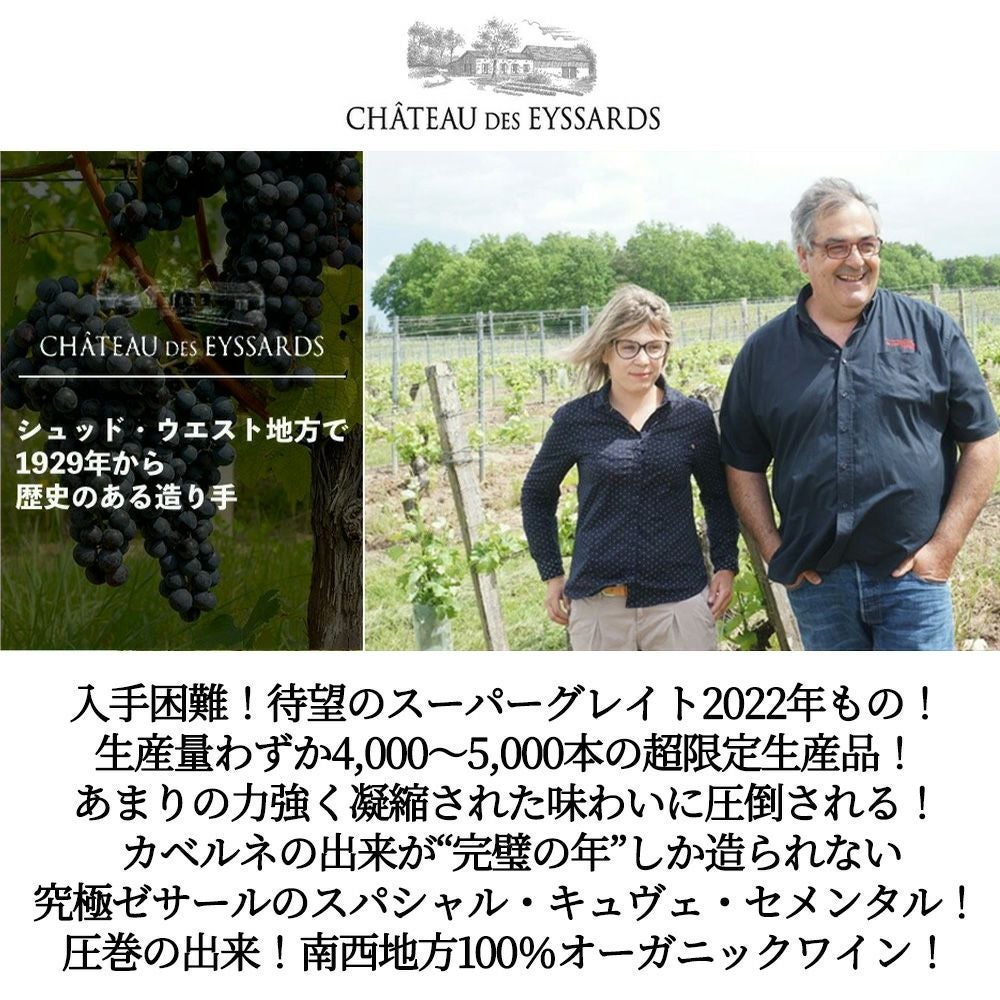 他の画像を見る シャトー デ ゼサール キュヴェ セメンタル 2022 蔵出し 超限定作品 フレンチオーク樽(バリック)100%で12ヵ月熟成Chateau des Eyssards Bergerac Rouge Cuvee Semental 2022 赤ワイン フランス フルボディ 辛口 当店特別価格 ¥ 4,012 税込 カートに入れる お気に入りに登録する