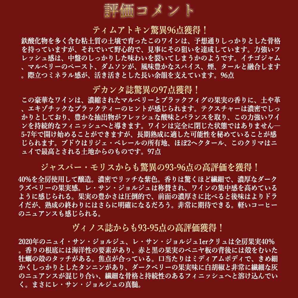 他の画像を見る ニュイ サン ジョルジュ プルミエ クリュ 一級 レ サン ジョルジュ 2022 蔵出し作品 ドメーヌ ティボー リジェ ベレール元詰 AOC 14%Nuits St Georges 1er Cru Les St Georges 2022 赤ワイン フランス フルボディ 辛口 当店特別価格 ¥ 37,734 税込 カートに入れる お気に入りに登録する