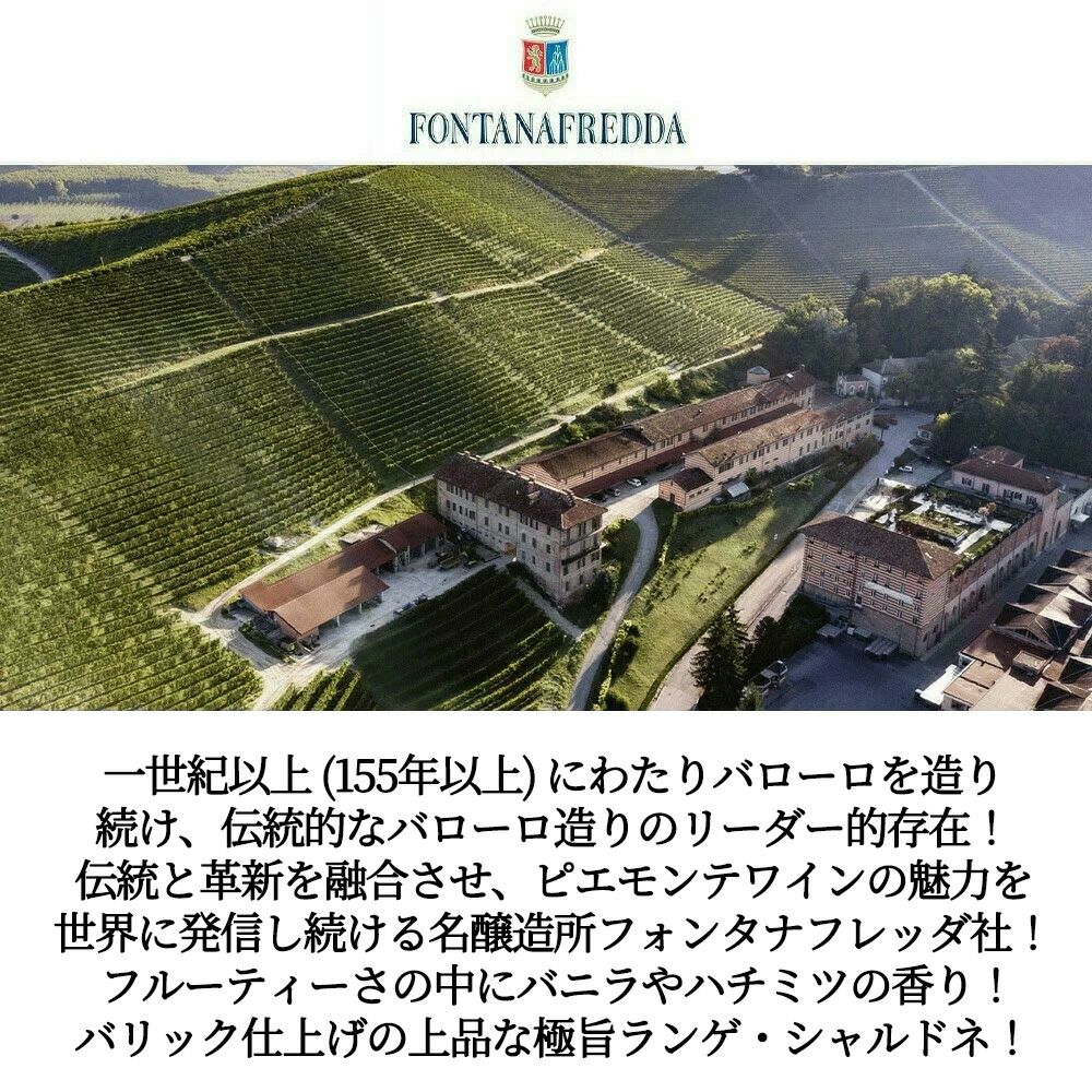 他の画像を見る アンペリオ ランゲ シャルドネ 2023 蔵出し フォンタナフレッダ社 シャルドネ100% DOCランゲ 正規品Ampelio Langhe Chardonnay 2023 Fontanafredda D.O.C. Langhe 白ワイン イタリア 辛口 当店特別価格 ¥ 3,040 税込 カートに入れる お気に入りに登録する