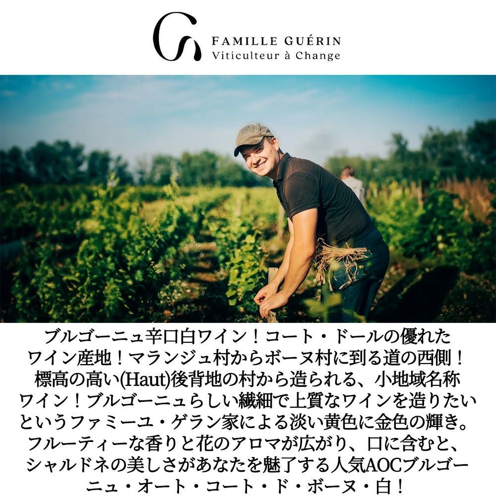 他の画像を見る ブルゴーニュ オート コート ド ボーヌ ブラン 2023 ファミーユ ゲラン元詰 AOCブルゴーニュ オート コート ド ボーヌ ブラン 12.5%Bourgogne Hautes-Cotes de Beaune Blanc 2023 白ワイン フランス 辛口 当店特別価格 ¥ 4,012 税込 カートに入れる お気に入りに登録する