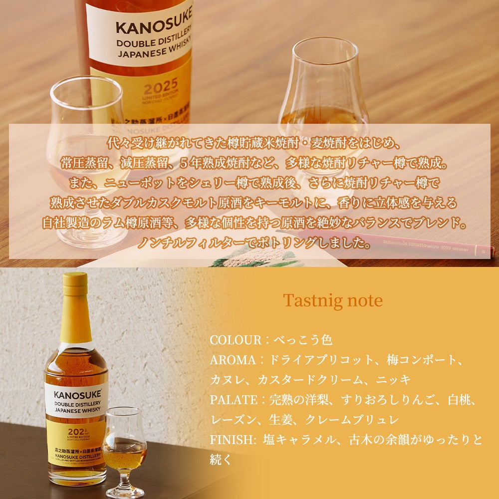 他の画像を見る 【送料無料】【箱入 正規品】 嘉之助 ダブルディスティラリー 2025 リミテッド エディション ジャパニーズ ウイスキー 700ml 59%SINGLEMALT KANOSUKE SINGLE MALT JAPANESE WHISKY ウイスキー 当店特別価格 ¥ 17,419 税込 カートに入れる お気に入りに登録する