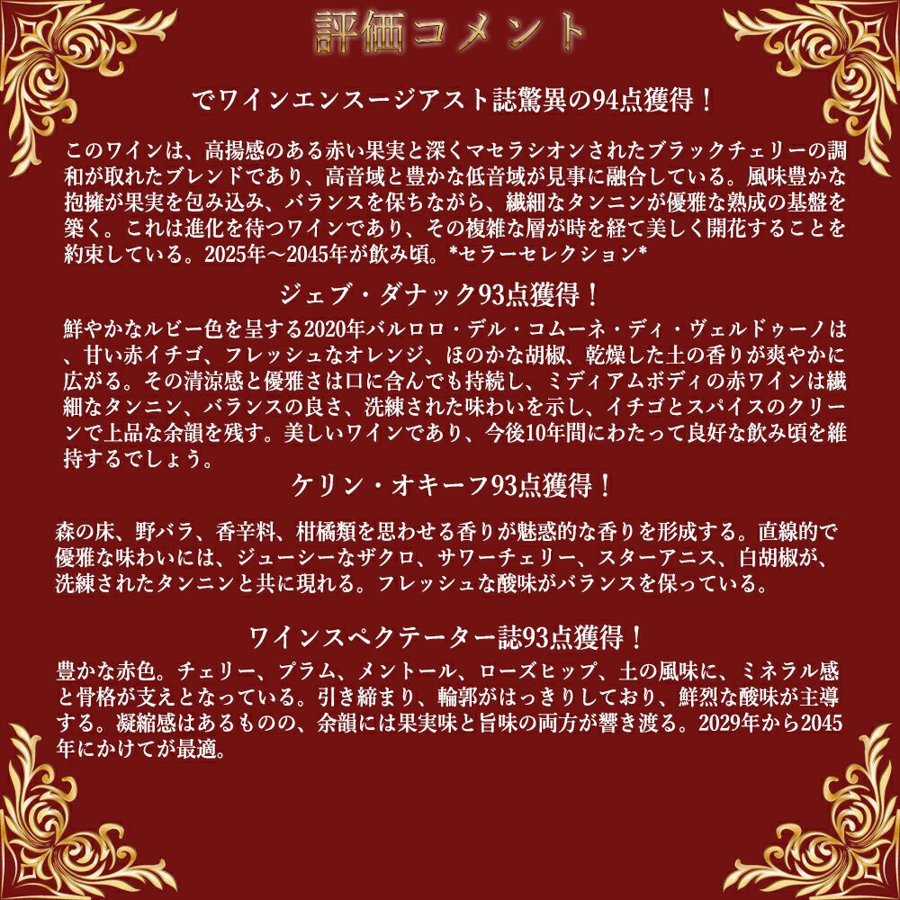 他の画像を見る バローロ ヴェルドゥーノ 2020 フラテッリ アレッサンドリア WE誌驚異の94点&ジェブ ダナック93点&ワインスペクテーター誌93点Barolo del Comune di Verduno 2020 Fratelli Alessandria 赤ワイン イタリア フルボディ 辛口 当店特別価格 ¥ 8,694 税込 カートに入れる お気に入りに登録する