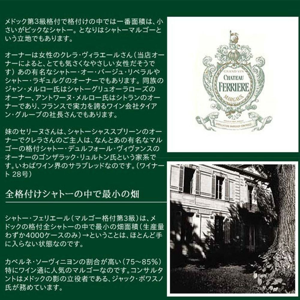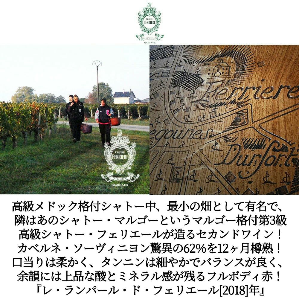 他の画像を見る レ ランパール ド フェリエール 2018 AOCマルゴー メドック グラン クリュ クラッセ フォルスタッフ誌驚異の93点 赤 辛口 フルボディLes Remparts de Ferriere 2018 AOC Margaux 3e Grand 赤ワイン フランス フルボディ 辛口 当店特別価格 ¥ 5,413 税込 カートに入れる お気に入りに登録する