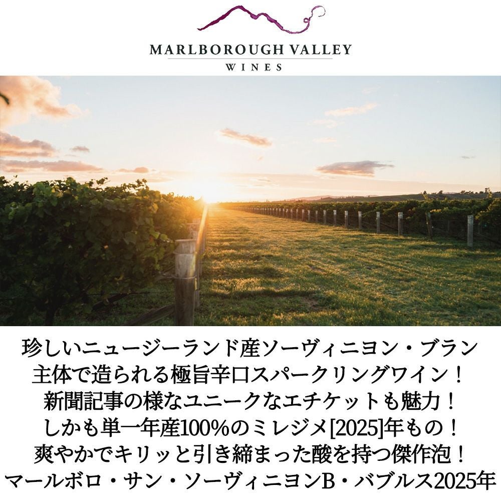 他の画像を見る マールボロ サン ソーヴィニヨン ブラン バブルス 2025 マールボロ ヴァレー ワインズMarlborough Sun Sauvignon Blanc Bubbles 2025 Marlborough Valley Wines 白ワイン スパークリング ニュージーランド 辛口 当店特別価格 ¥ 2,278 税込 カートに入れる お気に入りに登録する