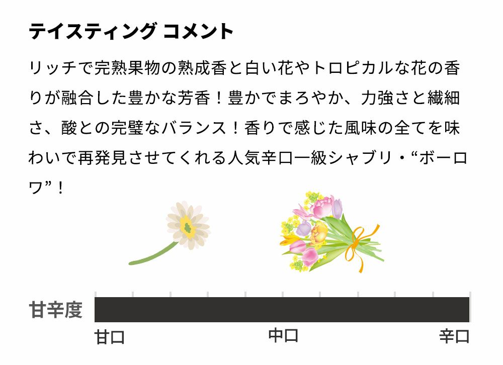他の画像を見る 【6本以上ご購入で送料無料】シャブリ プルミエ クリュ 一級 ボーロワ 2021 ドメーヌ アラン ジョフロワ元詰 AOCシャブリ プルミエ クリュ 一級Chablis 1er Cru “Beauroy” [2021] Domaine Alain Geoffroy AOC Chablis 1er Cru 白ワイン フランス 辛口 当店特別価格 ¥ 4,159 税込 在庫切れ 詳細を見る お気に入りに登録する