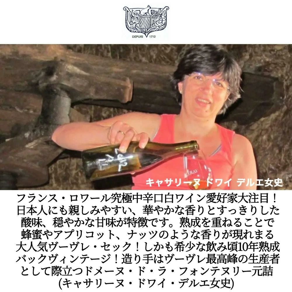 他の画像を見る ヴーヴレ ドゥミ セック 2015 蔵出し限定作品 ドメーヌ ド ラ フォンテヌリー元詰 シュナンブラン種100% AOCヴーヴレ ドゥミ セックVouvrey Demi Sec 2015 Domaine de la Fontainerie 白ワイン フランス やや辛口 当店特別価格 ¥ 3,492 税込 カートに入れる お気に入りに登録する
