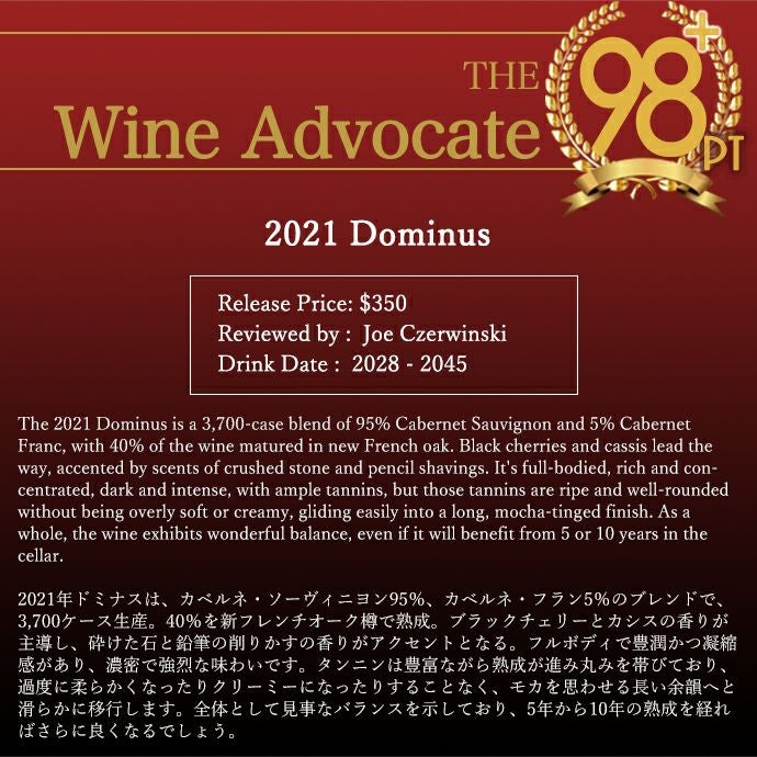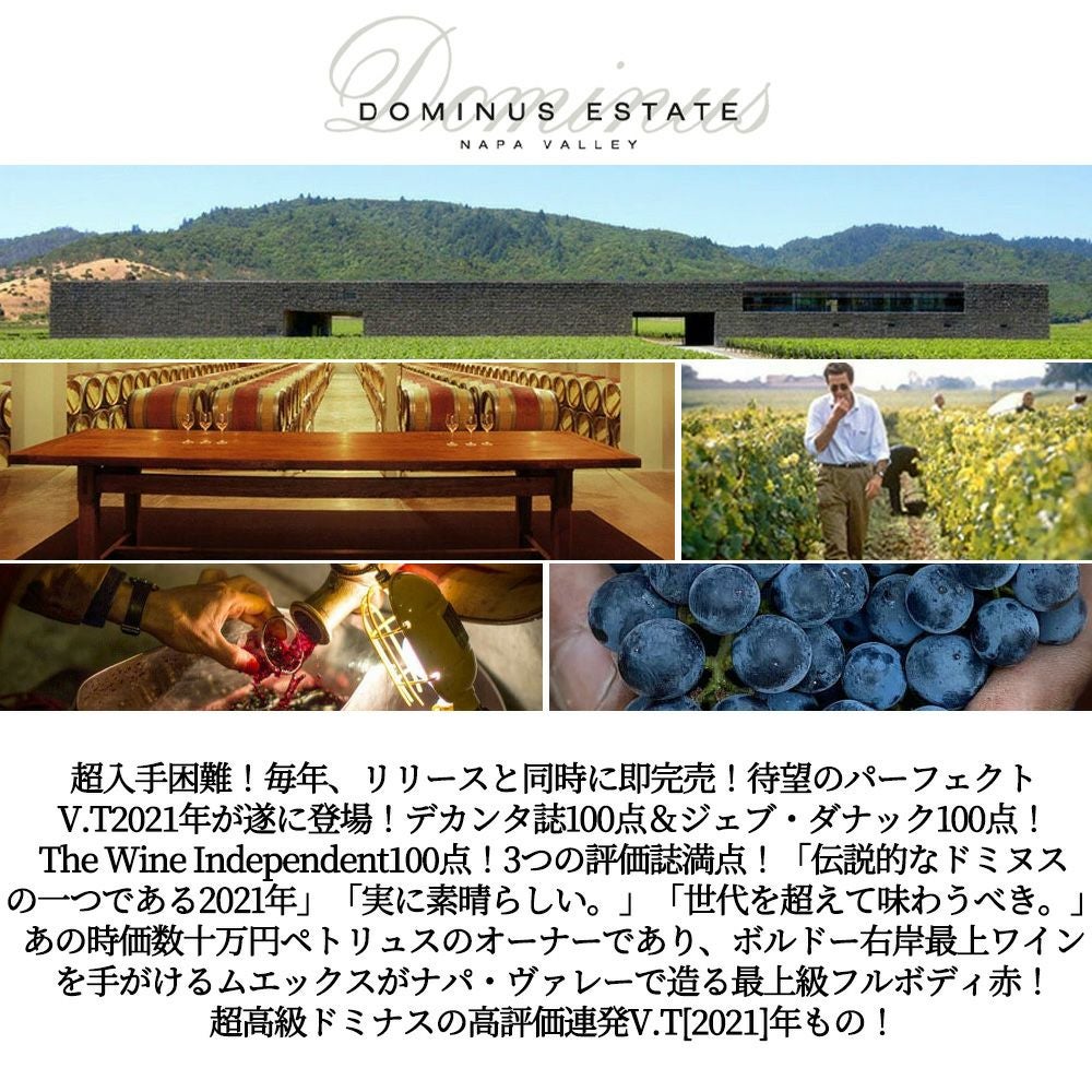他の画像を見る ドミナス 2021 蔵出し品 ドミナス エステート ナパ ヴァレー クリスチャン ムエックス 正規代理店輸入品 デカンタ誌&JD&TWI100点満点Dominus 2021 Napa Valley Dominus Estate Christian 赤ワイン アメリカ フルボディ 辛口 当店特別価格 ¥ 65,626 税込 カートに入れる お気に入りに登録する