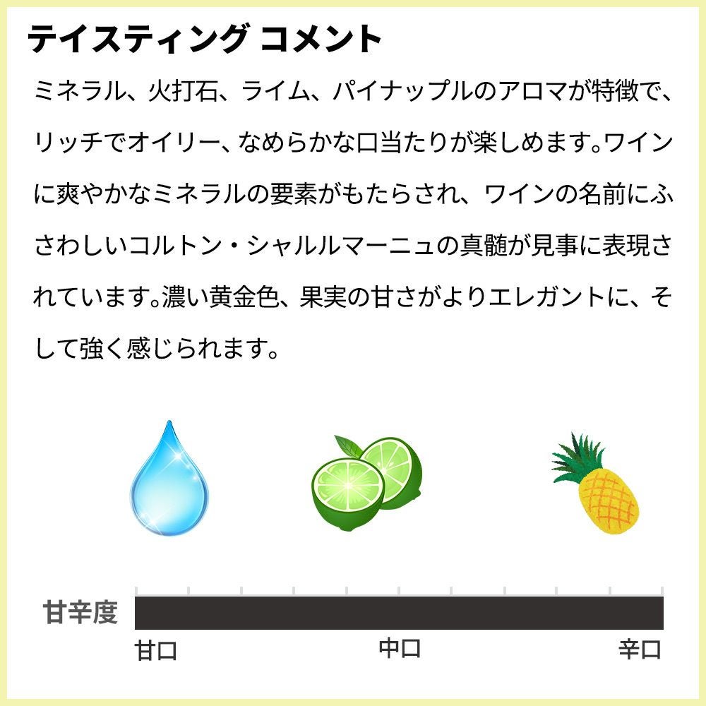 他の画像を見る コルトン シャルルマーニュ グラン クリュ 特級 カンテサンス 2022 蔵出し作品 ドメーヌ ヴァンサン ジラルダン元詰 正規品 ロウ封印Corton Charlemagne Quintessence Grand Cru 2022 Vincent Girardin 白ワイン フランス 辛口 当店特別価格 ¥ 71,060 税込 カートに入れる お気に入りに登録する