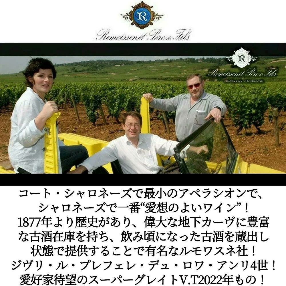 他の画像を見る ジヴリ ル プレフェレ デュ ロワ アンリ4世 (アンリ4世御愛用) ルージュ 2022 ルモワスネ ペール エ フィス社 AOCジヴリGIVRY Le Prefere du Roi Henri IV Rouge 2022 赤ワイン フランス ミディアムボディ 辛口 当店特別価格 ¥ 7,106 税込 カートに入れる お気に入りに登録する