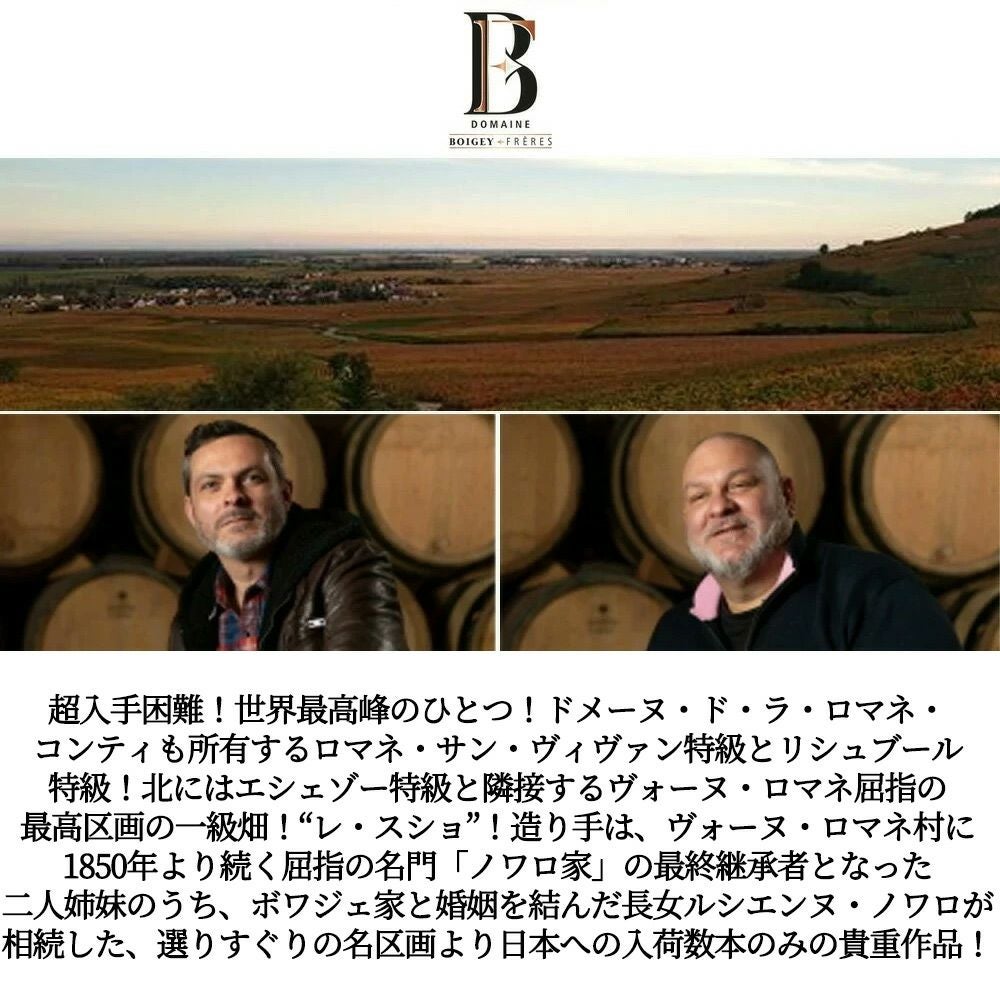 他の画像を見る ヴォーヌ ロマネ プルミエ クリュ 一級 レ スショ 2023 蔵出し作品 ドメーヌ ボワジェ フレール元詰 AOCヴォーヌ ロマネ 一級Vosne Romanee 1er Cru Les Suchots 2023 Domaine Boigey Freres 赤ワイン フランス フルボディ 辛口 当店特別価格 ¥ 71,896 税込 カートに入れる お気に入りに登録する