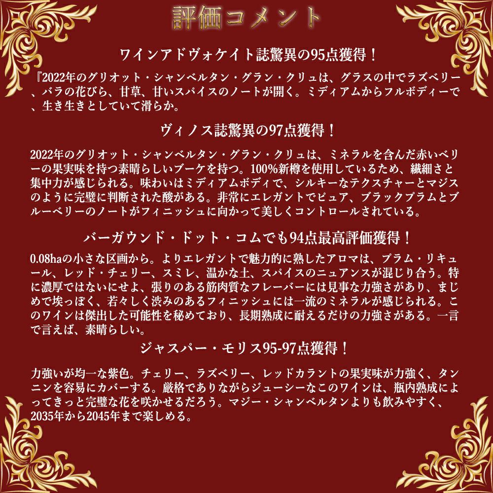他の画像を見る グリオット シャンベルタン グラン クリュ 特級 2022 蔵出し限定秘蔵品 ドメーヌ ジョセフ ロティ元詰 AOCグリオット シャンベルタンGriottes Chambertin Grand Cru 2022 Domaine Joseph 赤ワイン フランス フルボディ 辛口 当店特別価格 ¥ 93,841 税込 カートに入れる お気に入りに登録する