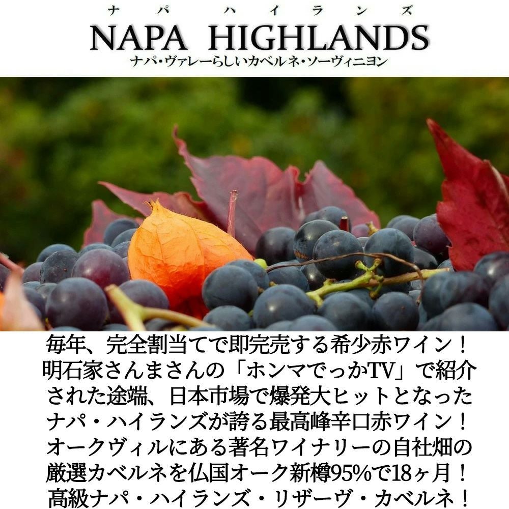 他の画像を見る ナパ ハイランズ リザーヴ カベルネ ソーヴィニヨン オークヴィル ナパ ヴァレー 2022 ナパ ハイランズ 正規代理店輸入品 赤 辛口 フルボディNapa Highlands Reserve Cabernet Sauvignon 赤ワイン アメリカ フルボディ 辛口 当店特別価格 ¥ 10,429 税込 カートに入れる お気に入りに登録する