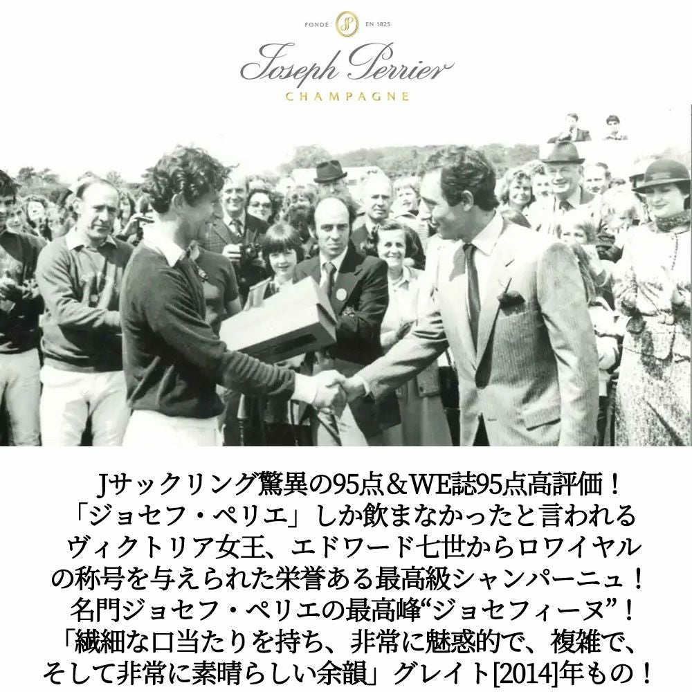 他の画像を見る 【豪華箱入】ジョセフ ペリエ シャンパーニュ キュヴェ ジョセフィーヌ ブリュット ミレジム 2014 AOCミレジム シャンパーニュ 正規品JOSEPH PERRIER Champagne Cuvee JOSEPHINE Brut Millesime 2014 スパークリング シャンパン フランス 辛口 当店特別価格 ¥ 36,052 税込 カートに入れる お気に入りに登録する