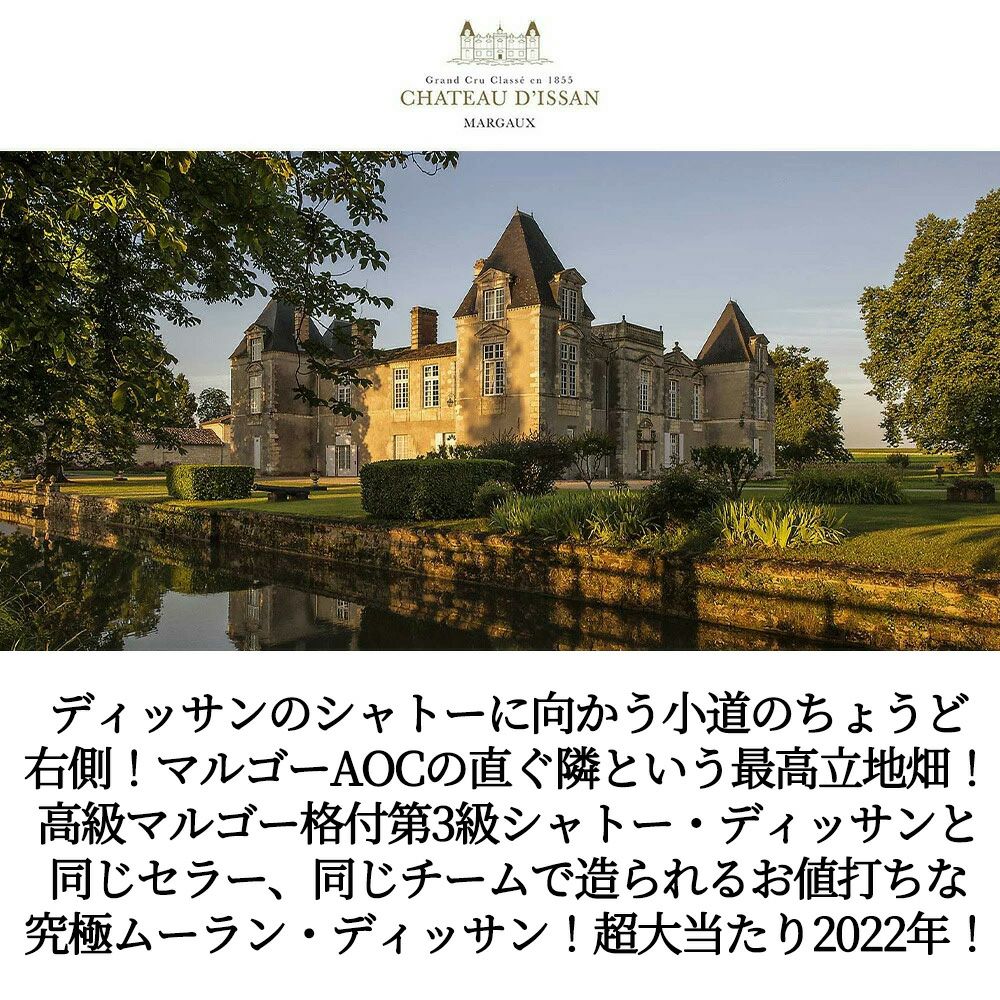 他の画像を見る ムーラン ディッサン 2022 シャトー ディッサン元詰 AOCボルドー シュペリエール 赤 辛口 フルボディMoulin d'Issan 2022 Chateau d'Issan AOC Bordeaux Superieur 赤ワイン フランス フルボディ 辛口 当店特別価格 ¥ 2,737 税込 カートに入れる お気に入りに登録する