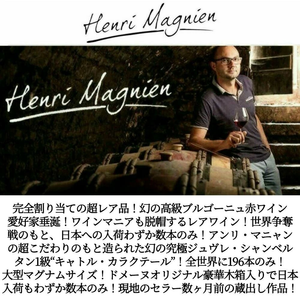 他の画像を見る 【大型マグナム 豪華木箱入り】ジュヴレ シャンベルタン プルミエ クリュ 一級 キャトル カラクテール 2023 蔵出し作品 アンリ マニャン元詰Gevrey Chambertin 1er Cru 4 carac'terre 2023 赤ワイン フランス フルボディ 辛口 当店特別価格 ¥ 75,021 税込 カートに入れる お気に入りに登録する