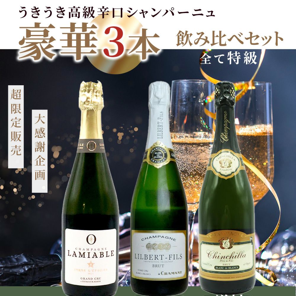 他の画像を見る 【送料無料】超限定販売!大感謝企画!うきうき高級辛口シャンパーニュ豪華3本(全て特級)飲み比べセット【限定60セットのみ】UKIUKI Grand Cru Champagne 3 SET 当店特別価格 ¥ 14,201 税込 在庫切れ 詳細を見る お気に入りに登録する
