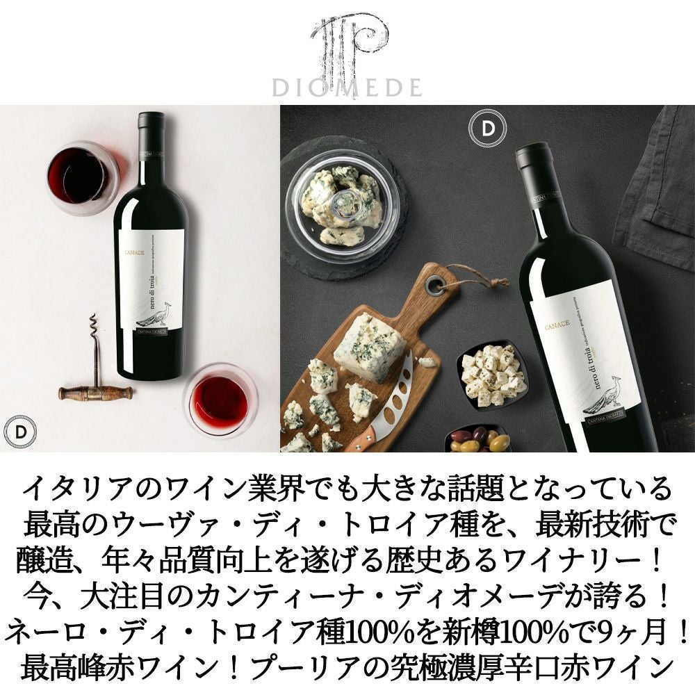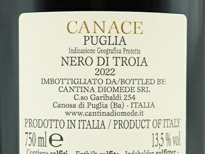 他の画像を見る カナーチェ 2022 フレンチオーク樽&新樽100%で9ヶ月熟成 自社畑100% カンティーナ ディオメーデ元詰 I.G.Pプーリア 正規品Canace 2022 Cantina Diomede I.G.P Puglia 赤ワイン イタリア フルボディ 辛口 当店特別価格 ¥ 2,905 税込 カートに入れる お気に入りに登録する