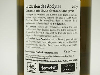 他の画像を見る ル カラフォン デ ザコリット セパージュ グリ 2023 蔵出し品 ドメーヌ デ ザコル元詰 自然派ビオ 正規品Le Carafon des Acolytes Cepages Gris 2023 Domaine des Accoles 白ワイン フランス 辛口 当店特別価格 ¥ 3,971 税込 カートに入れる お気に入りに登録する