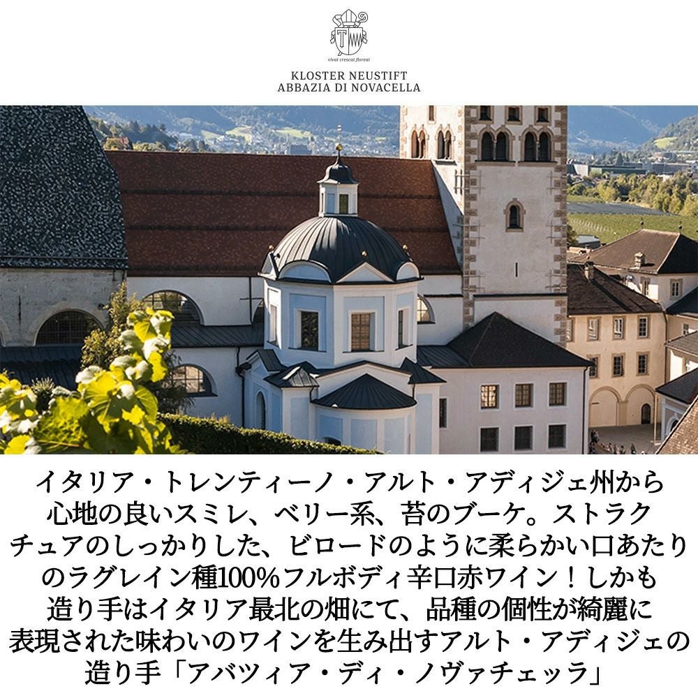 他の画像を見る ラグレイン 2024 アバツィア ディ ノヴァチェッラ元詰 D.O.C.アルト アディジェ ヴァッレ イサルコ ラグレイン JS90点 (2022年)LAGREIN 2024 ABBAZIA DI NOVACELLA D.O.C SUDTIROL 赤ワイン イタリア フルボディ 辛口 当店特別価格 ¥ 3,223 税込 カートに入れる お気に入りに登録する