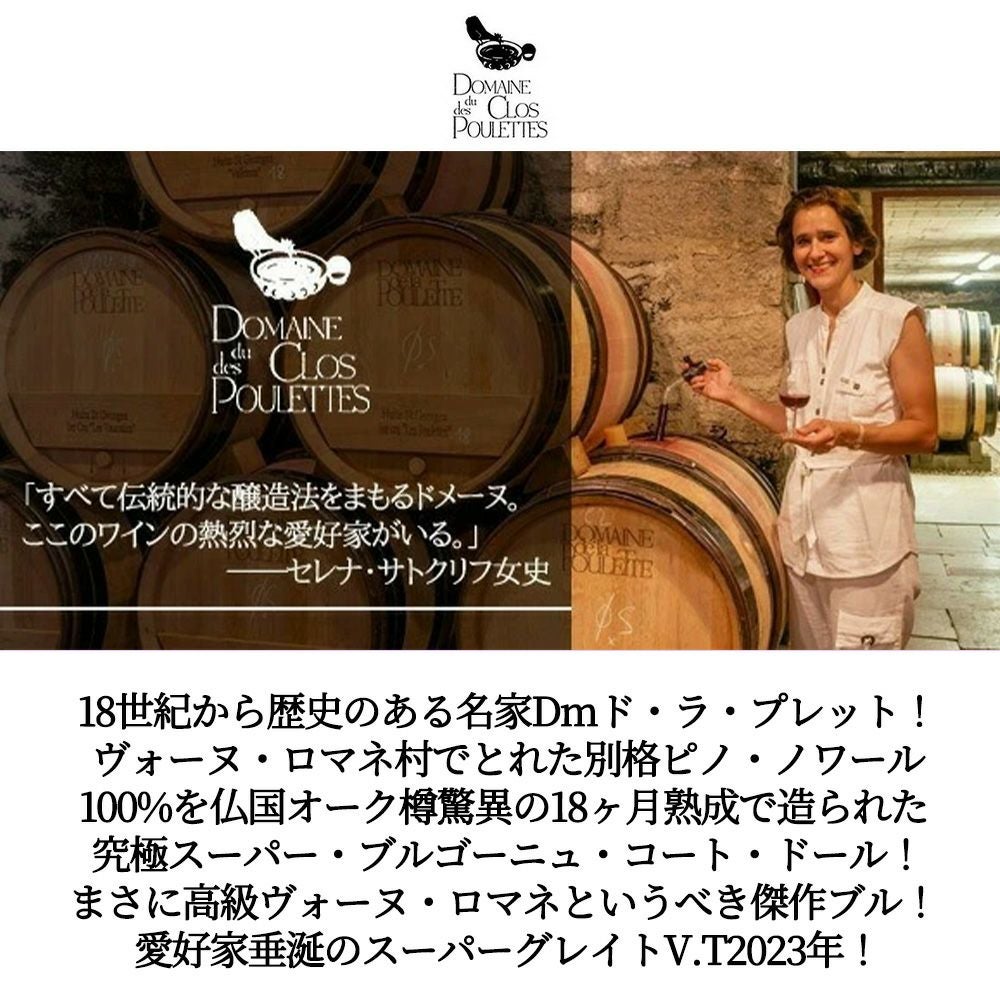 他の画像を見る ブルゴーニュ コート ドール ラ コルヴェ オー プレートル ルージュ(ヴォーヌ ロマネ) 2023 蔵出し品 ドメーヌ ド ラ プレット(プーレット)元詰Bourgogne cotes d'or Rouge La Corvee au Pretre 赤ワイン フランス 辛口 当店特別価格 ¥ 3,950 税込 カートに入れる お気に入りに登録する