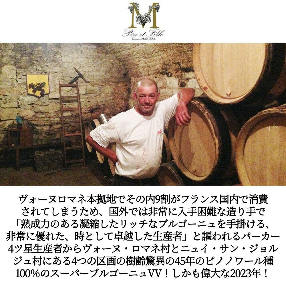 他の画像を見る ブルゴーニュ ピノ ノワール 2023 ドメーヌ マニエール ペール エ フィーユ元詰 ピノノワール100% AOCブルゴーニュ ルージュBourgogne Pinot Noir 2023 Domaine Maniere Pere & Fille 赤ワイン フランス ミディアムボディ 辛口 当店特別価格 ¥ 6,061 税込 カートに入れる お気に入りに登録する