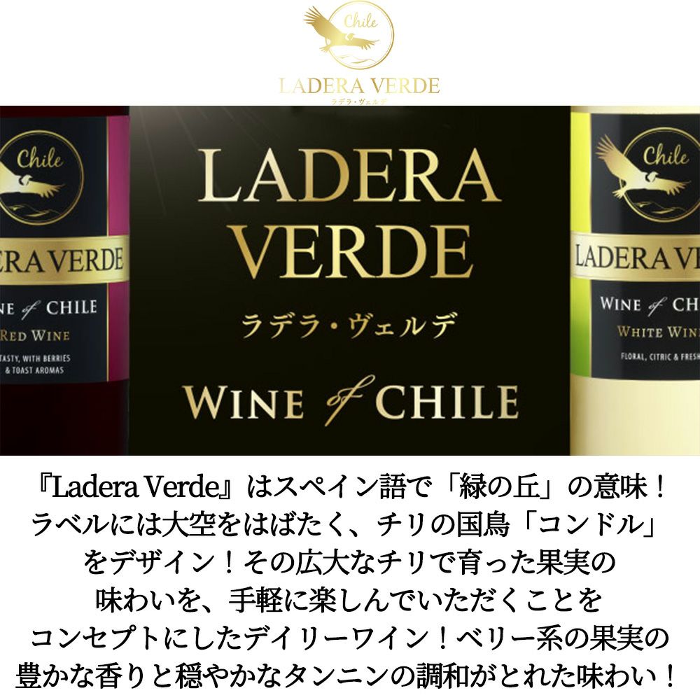 他の画像を見る 【6本入り】【送料無料】【大型】メルシャン ラデラ ヴェルデ ホワイト ペットボトル 1.5L 1500mlLadera Verde White 白ワイン チリ やや辛口 送料無料 当店特別価格 ¥ 5,280 税込 カートに入れる お気に入りに登録する