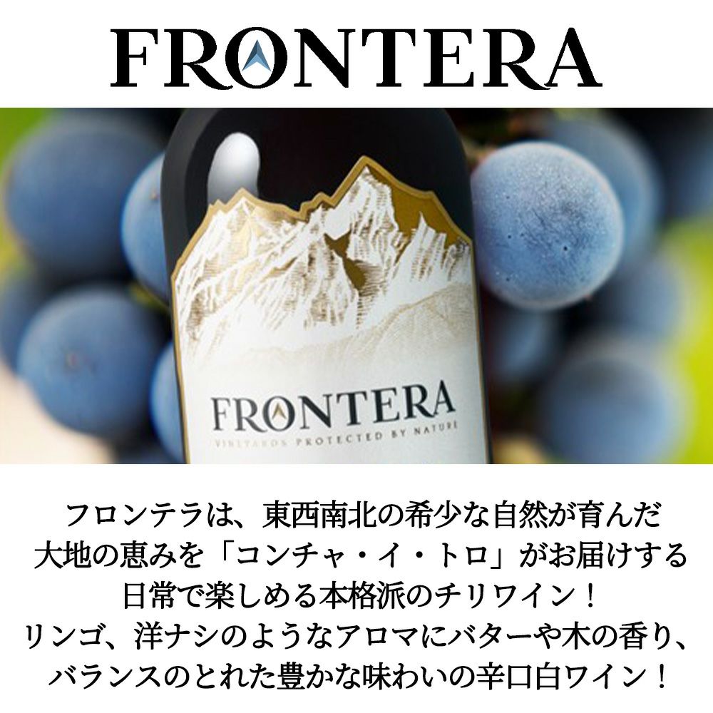 他の画像を見る コンチャ イ トロ フロンテラ プレミアム シャルドネ チリ 白 辛口 750mlConcha y Toro Frontera Premium Chardonnay 白ワイン チリ 辛口 当店特別価格 ¥ 886 税込 カートに入れる お気に入りに登録する