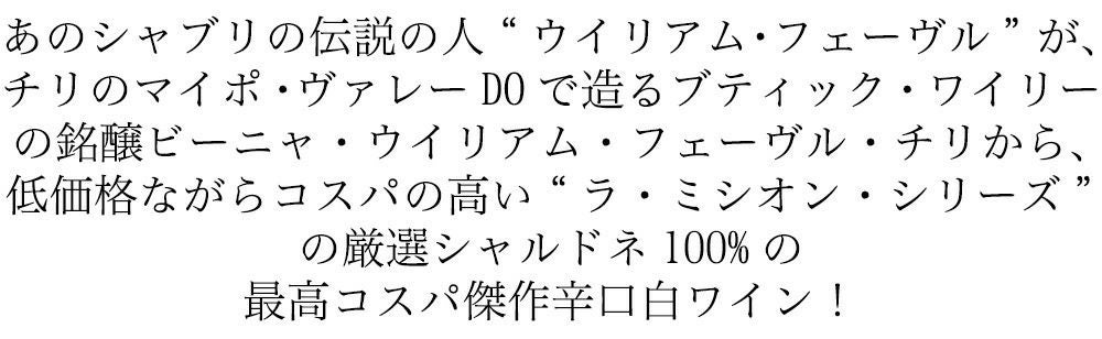 他の画像を見る ラ ミシオン デ ピルケ シャルドネ レセルバ 2025 ヴィーニャ ウィリアム フェーヴル チリLa Misi n De Pirque Chardonnay Reserva 2025 Vina William Fevre Chile 白ワイン チリ 辛口 当店特別価格 ¥ 1,170 税込 カートに入れる お気に入りに登録する