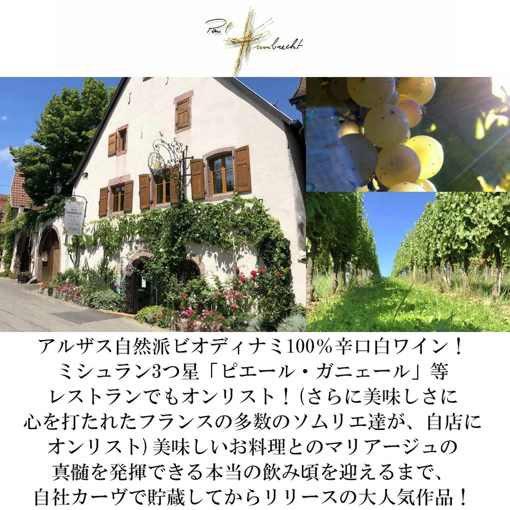 レストラン様からのリピート多数!アルザス辛口白ワイン愛好家大注目!アルザス自然派ビオディナミ100%辛口白ワイン愛好家大注目!ミシュラン3つ星「ピエール・ガニェール」等レストランでもオンリスト!ワイン誌の評価も高く、フランスワイン権威評価本アシェット・ガイド誌や「Gilbert & Gaillard」等にも掲載!