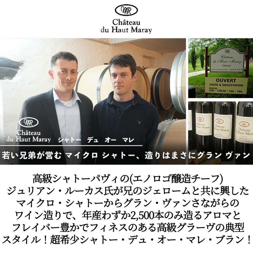 他の画像を見る シャトー デュ オー マレ ブラン 2020 6-8ヶ月熟成 AOCグラーヴ シャトー元詰(ジュリアン&ジェローム ルーカス家)Chateau du Haut Maray Blanc [2020] AOC Graves【eu_ff】【BO5】 白ワイン フランス 辛口 当店特別価格 ¥ 3,511 税込 カートに入れる お気に入りに登録する