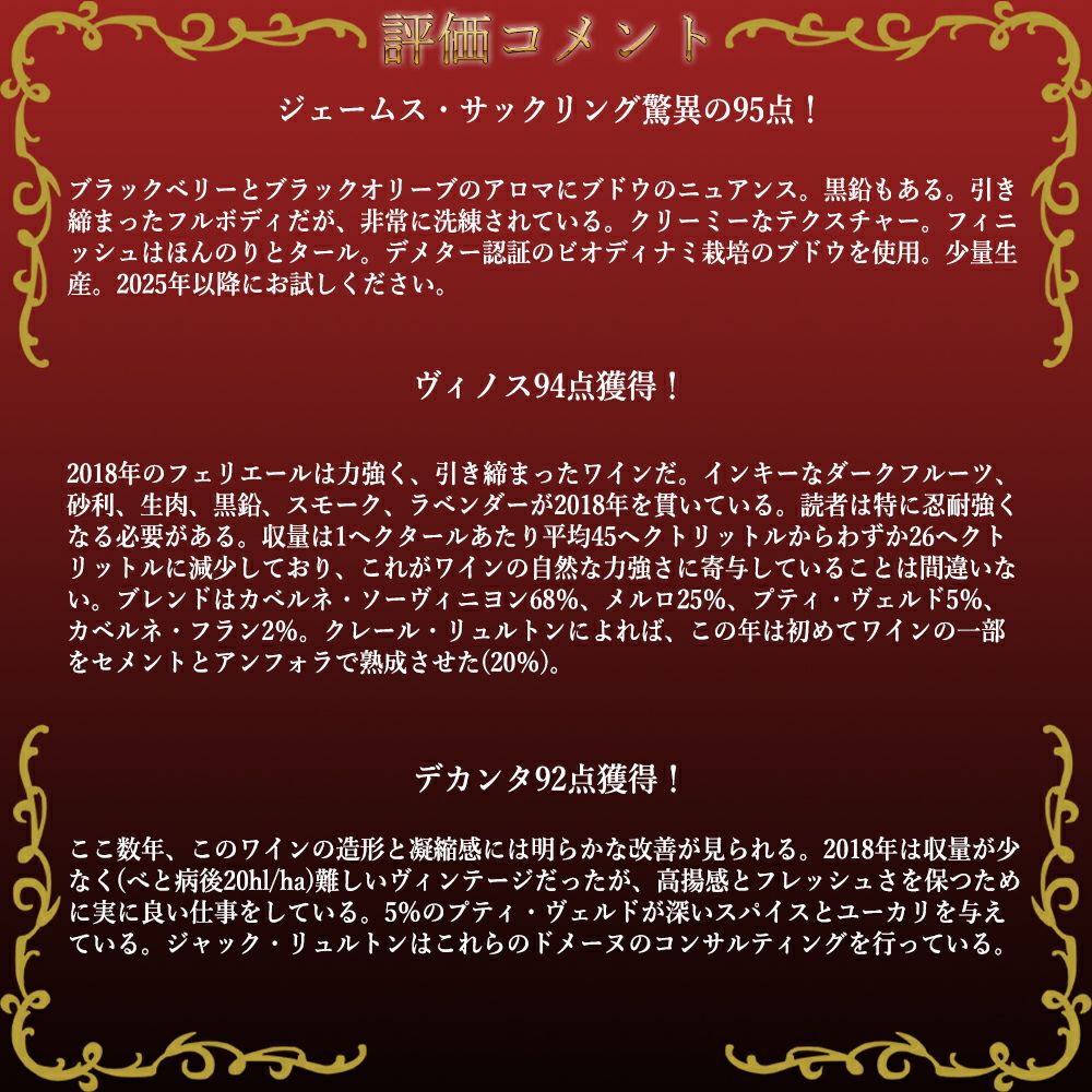 他の画像を見る シャトー フェリエール 2018 手摘み100% オーク樽驚異の18ヶ月熟成 AOCマルゴー メドック グラン クリュ クラッセ 格付第三級Chateau FERRIERE 2018 AOC Margaux 3e Grand Cru Classe 赤ワイン フランス フルボディ 辛口 当店特別価格 ¥ 9,196 税込 カートに入れる お気に入りに登録する