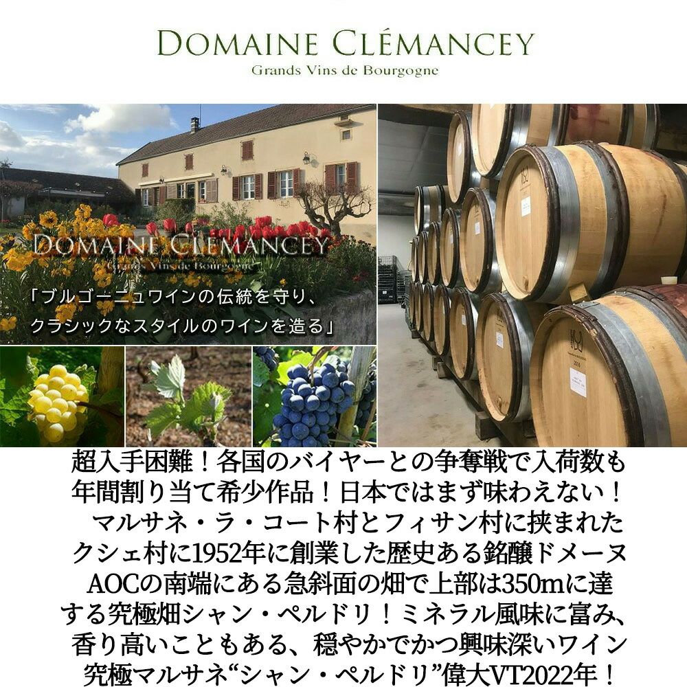 他の画像を見る マルサネ シャン ペルドリ 2022 蔵出し限定品 ドメーヌ クレマンセイ元詰 AOCマルサネ ルージュ 正規品MARSANNAY Champs Perdrix Rouge [2022] Domaine Clemancey 赤ワイン フランス フルボディ 辛口 当店特別価格 ¥ 6,642 税込 カートに入れる お気に入りに登録する