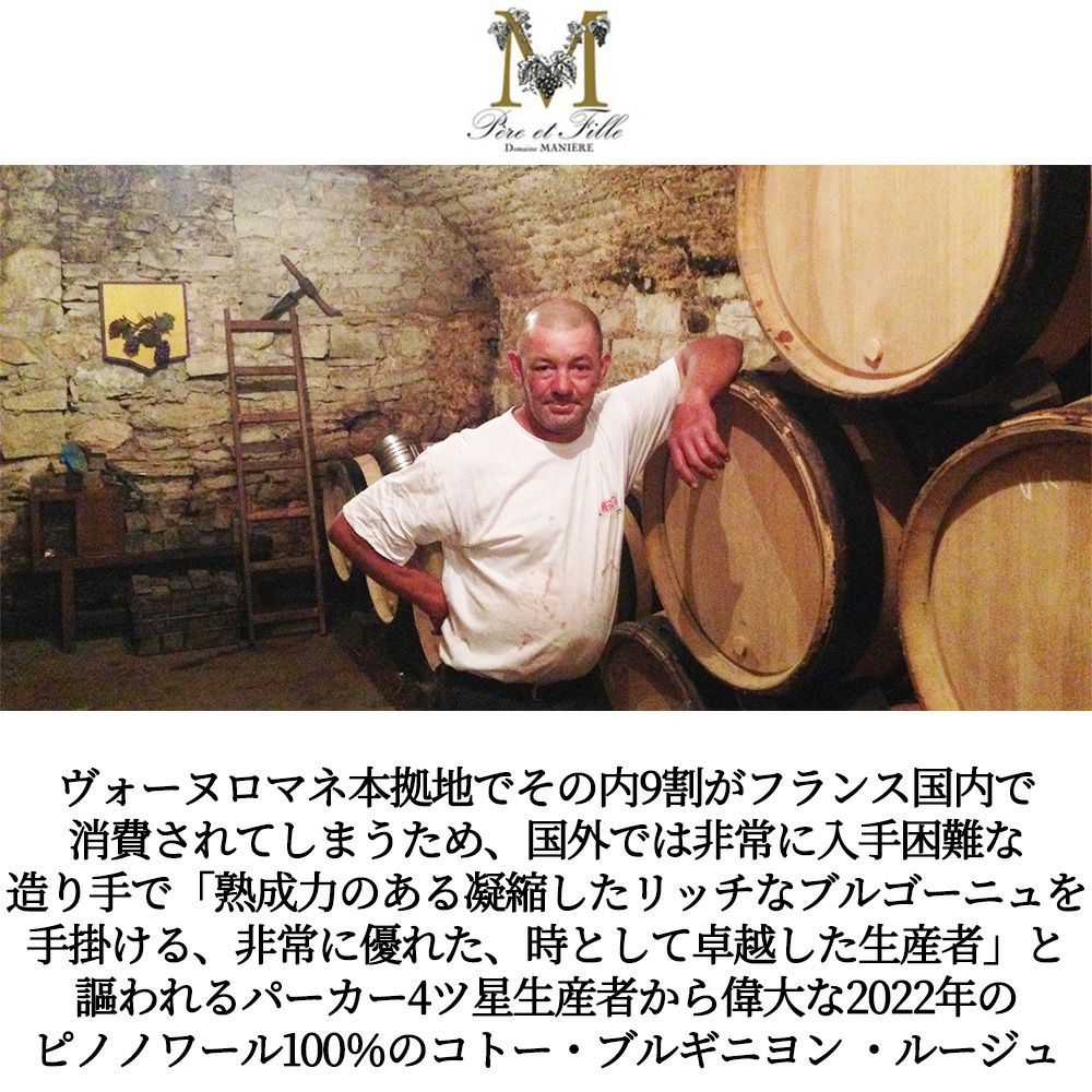 他の画像を見る コトー ブルギニヨン キュヴェ ジュリエ ルージュ 2022 ドメーヌ マニエール ペール エ フィーユ元詰 AOCコトー ブルギニヨン ルージュCoteaux Bourguignons Cuvee Julie Rouge 2022 赤ワイン フランス ミディアムボディ 辛口 当店特別価格 ¥ 4,745 税込 在庫切れ 詳細を見る お気に入りに登録する