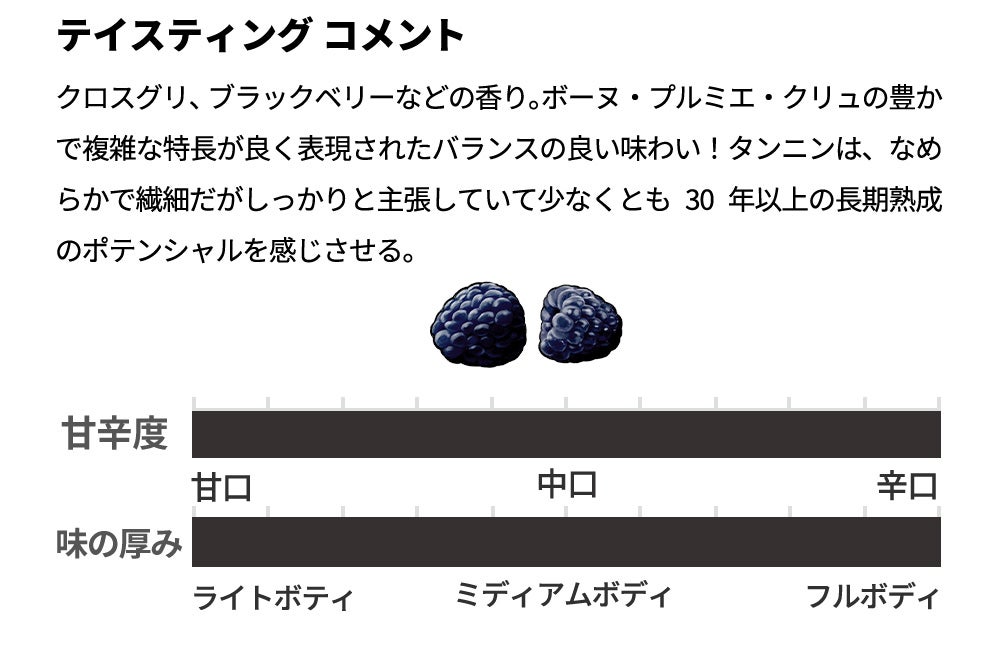 他の画像を見る ポマール 2022 蔵出し限定品 ドメーヌ ブルゴーニュ ドゥヴォー元詰 樽醗酵&オーク樽12~18ヶ月熟成 AOCポマールPOMMARD 2022 Domaine Bourgogne Devaux AOC Pommard 赤ワイン フランス フルボディ 辛口 当店特別価格 ¥ 11,369 税込 カートに入れる お気に入りに登録する
