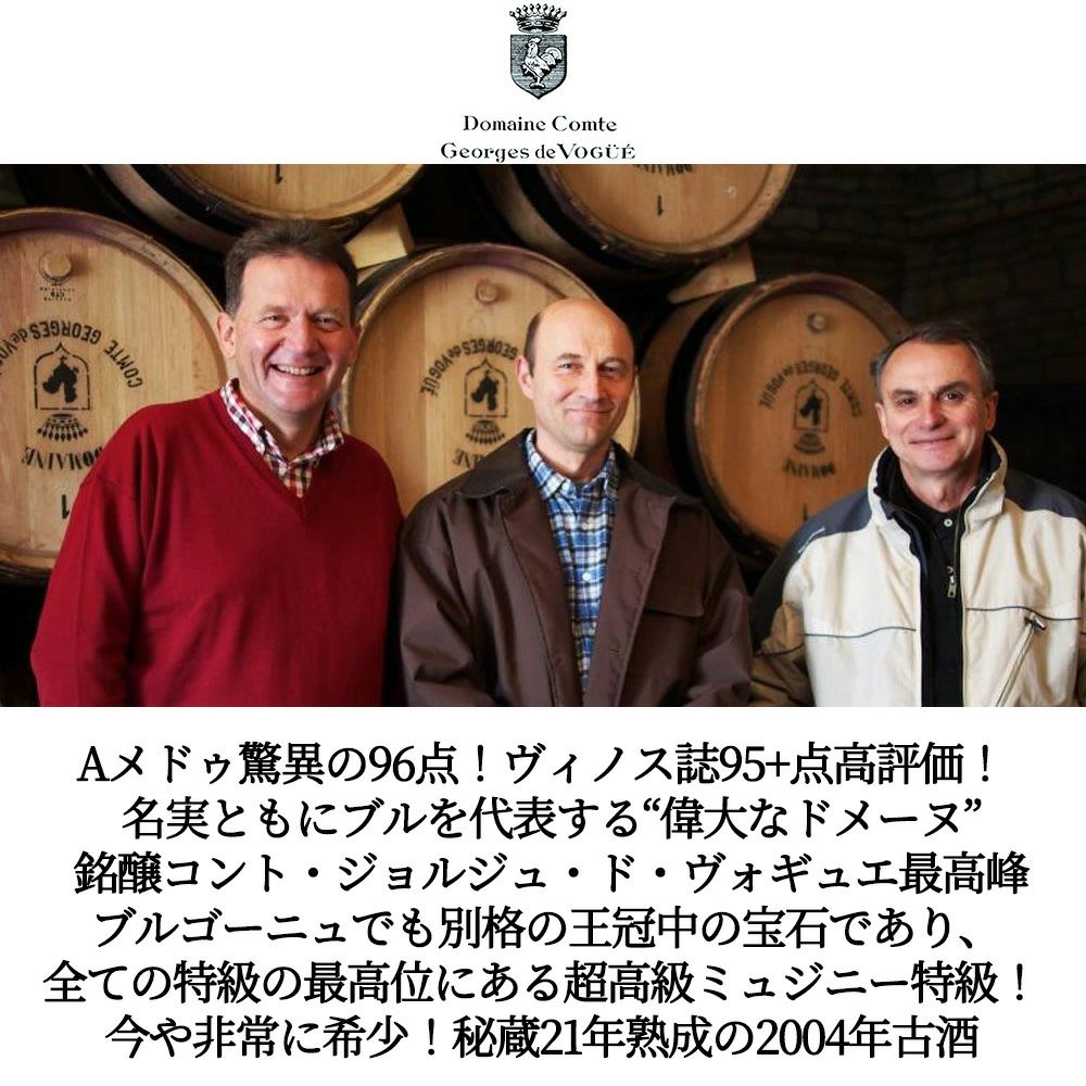 他の画像を見る ミュジニー グラン クリュ 特級 キュヴェ ヴィエイユ ヴィーニュ 2004 蔵出し限定品 ドメーヌ コント ジョルジュ ド ヴォギュエ元詰Musigny Grand Cru Vieilles Vignes 2004 Domaine Comte 赤ワイン フランス フルボディ 辛口 当店特別価格 ¥ 292,600 税込 在庫切れ 詳細を見る お気に入りに登録する