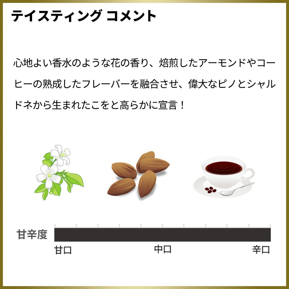 - ブドウ品種ピノ・ノワール45%、シャルドネ45%、ピノ・ムニエ10%