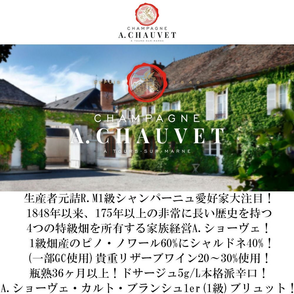 他の画像を見る A.ショーヴェ シャンパーニュ カルト ブランシュ プルミエ クリュ ブリュット シャンパーニュ R.M 生産者元詰 トゥール シュル マルヌA.Chauvet Carte Blanche 1er Cru Champagne R.M Vallee 白ワイン スパークリング シャンパン フランス 辛口 当店特別価格 ¥ 4,786 税込 カートに入れる お気に入りに登録する