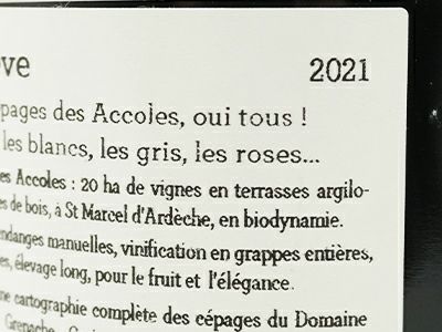 他の画像を見る ポリセーヴ デ ザコル 2021 蔵出し品 ドメーヌ デ ザコル元詰 自然派ビオ 正規品PolySeve des Accoles 2021 Domaine des Accoles (Florence et Olivier Leriche) 当店特別価格 ¥ 6,267 税込 カートに入れる お気に入りに登録する