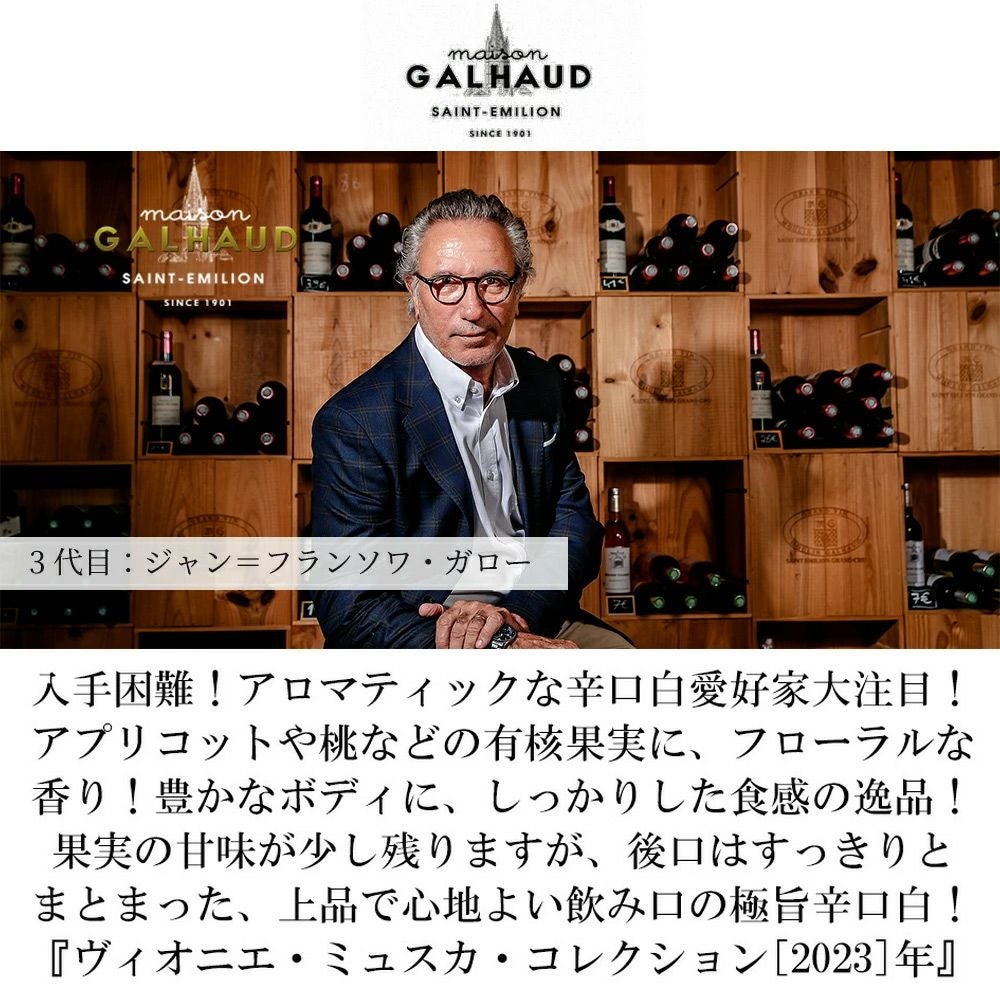 他の画像を見る ヴィオニエ ミュスカ コレクション 2023 メゾン ガロー I.G.P.ペイドック ブラン 白 辛口 フランスViognier Muscat Collection 2023 Maison Galhaud Vin de Pays d'Oc 白ワイン フランス 辛口 当店特別価格 ¥ 2,340 税込 カートに入れる お気に入りに登録する