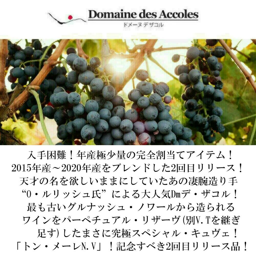 他の画像を見る トン メーレN.V(2015年-2020年)(XV-XX)ドメーヌ デ ザコル元詰 自然派ビオ(AB&デメテール認証&FRビオ) 正規品 赤 辛口Temps Meles NV Domaine des Accoles 赤ワイン フランス フルボディ 辛口 自然派 当店特別価格 ¥ 8,035 税込 カートに入れる お気に入りに登録する