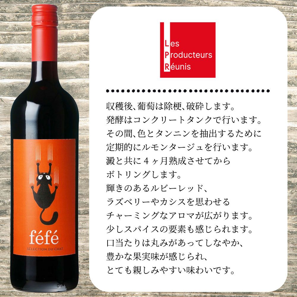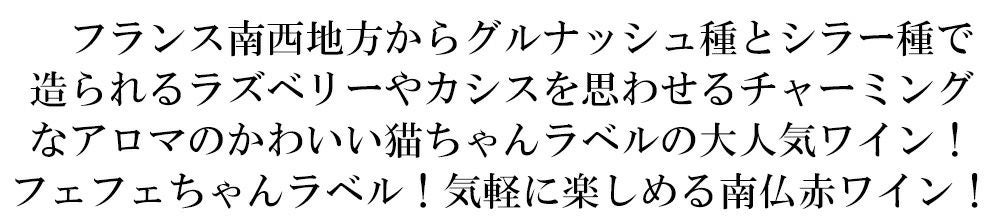 他の画像を見る フェフェ ヴァン ド フランス ルージュ[2024]年 (フランス気質の猫ラベル) レ プロデュクトゥール レウニ社 ヴァン ド フランス ルージュ フランス ラングドック ルーションfefe Vin de France Rouge 2024 赤ワイン フランス ミディアムボディ 辛口 当店特別価格 ¥ 1,045 税込 カートに入れる お気に入りに登録する