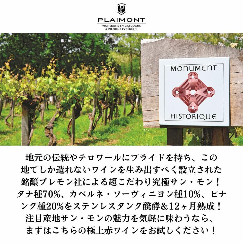 他の画像を見る サン モン エリタージュ ルージュ 2019 プレモン生産組合 AOCサン モン タナ種主体 (70%) イギリス 6年熟成Plaimont Saint Mont Heritage Rouge 2019 Producteurs Plaimont 赤ワイン フランス フルボディ 辛口 当店特別価格 ¥ 1,755 税込 カートに入れる お気に入りに登録する